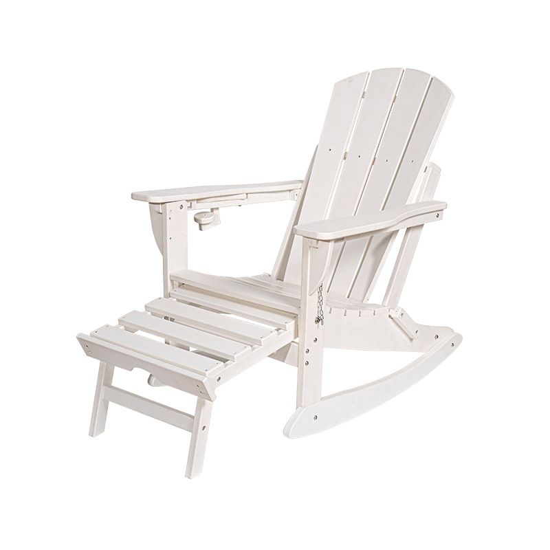 This white legrest three-in-one multifunctional rocking chair combines modern and classic elements with a sleek and elegant design. The overall structure is painted in pure white, giving it a fresh and natural look that suits various outdoor environments. The armrests and backrest have smooth lines, and the wide seat and backrest provide excellent comfort. Additionally, the adjustable legrest enhances the user experience.